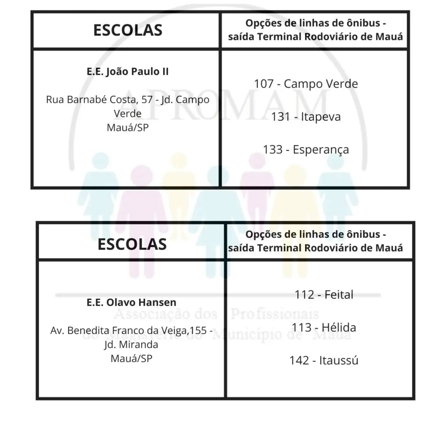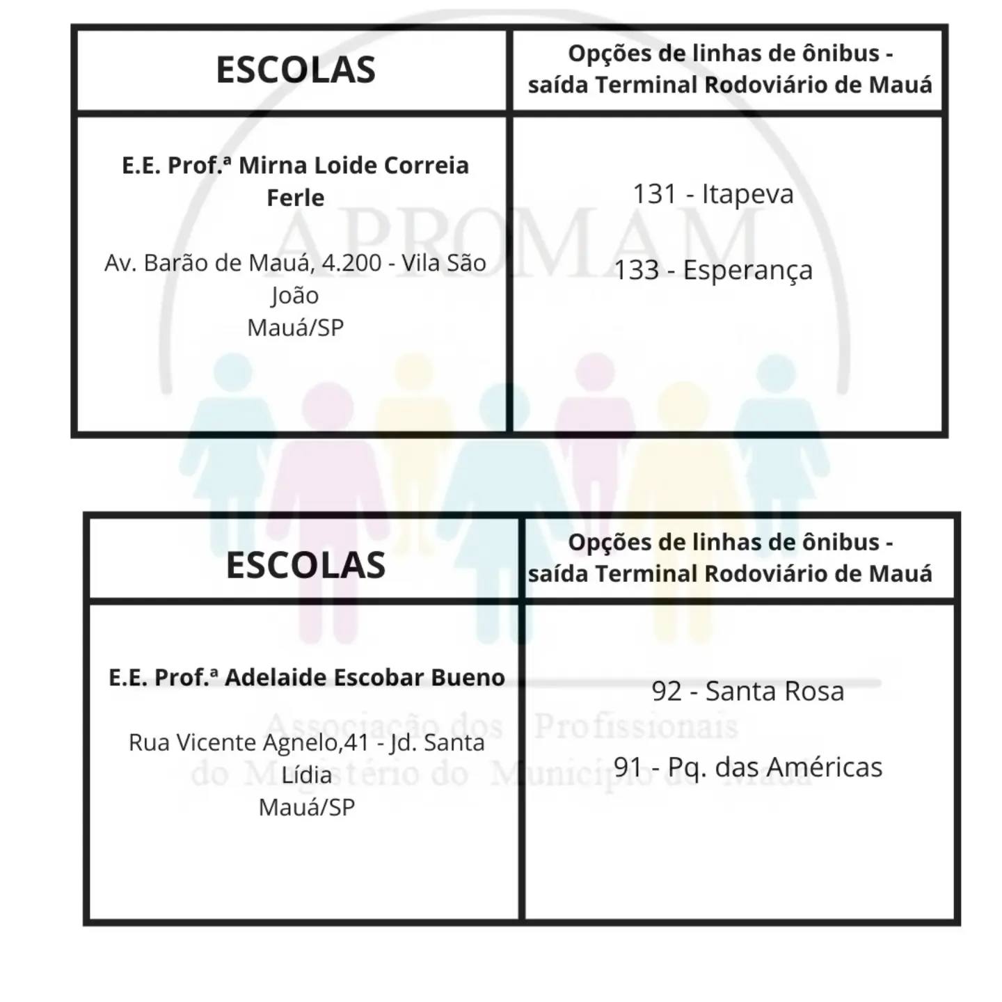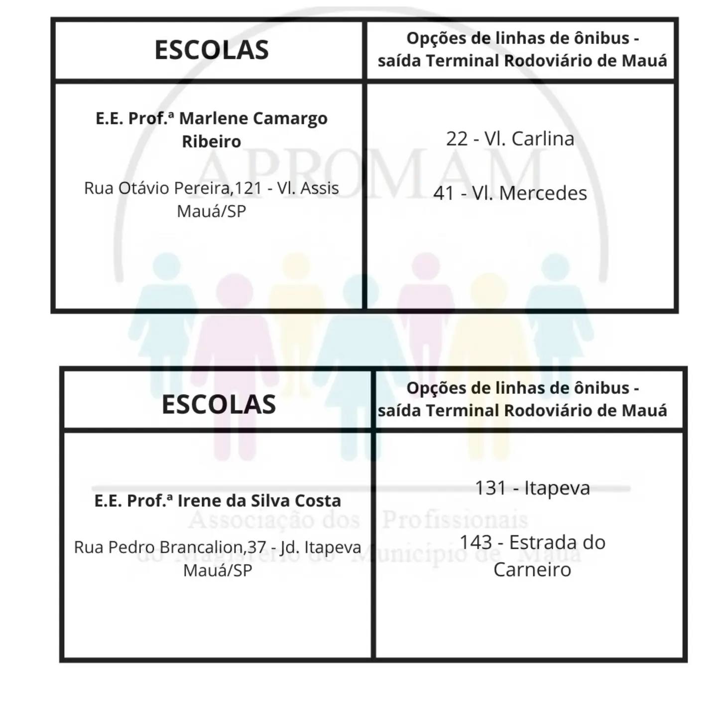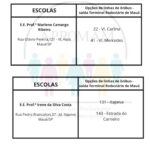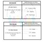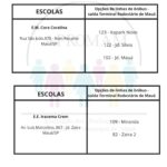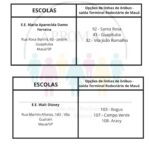 Concurso Público n°01/2024, para as vagas de ADI e PEB II, será realizado no dia 01 de setembro nas escolas citadas abaixo, na tabela você terá a indicação da linha de ônibus que dará acesso a cada escola.
