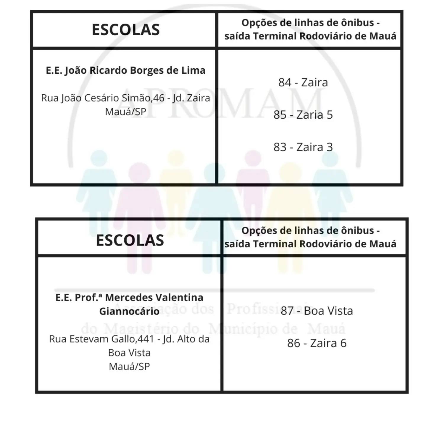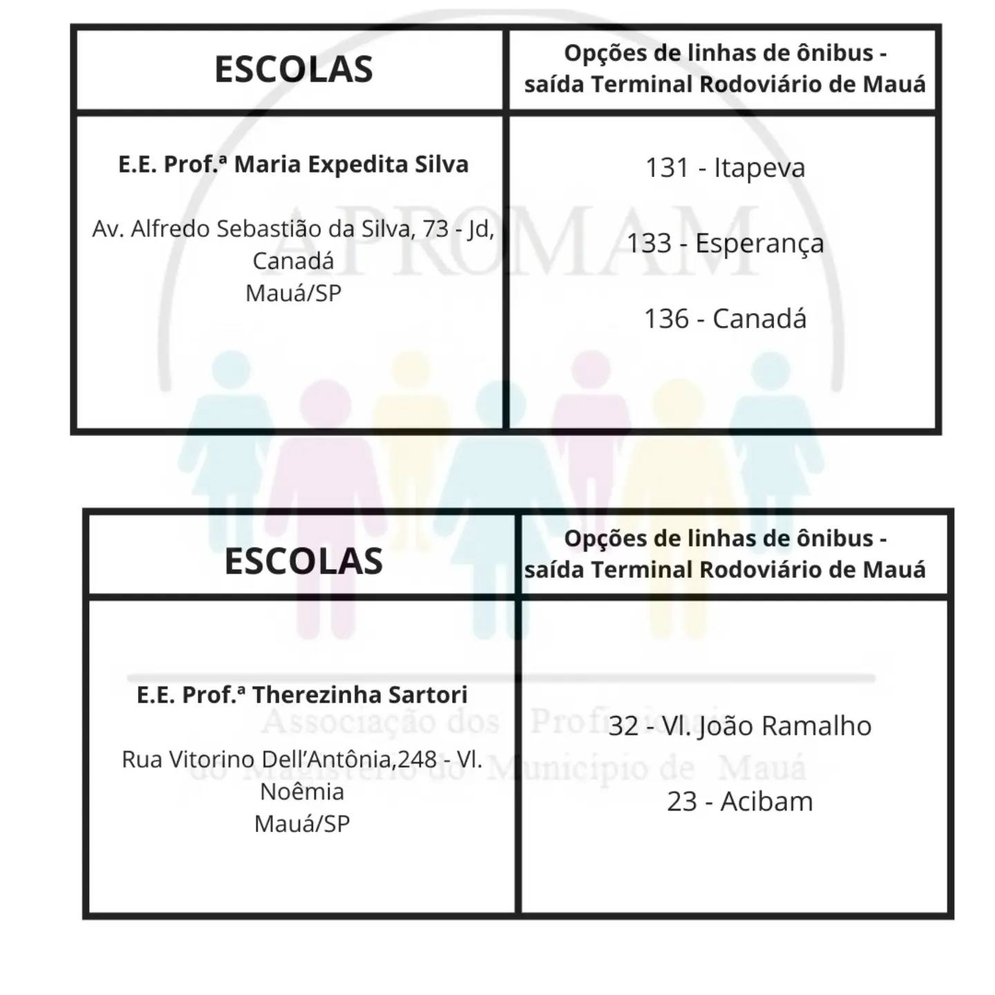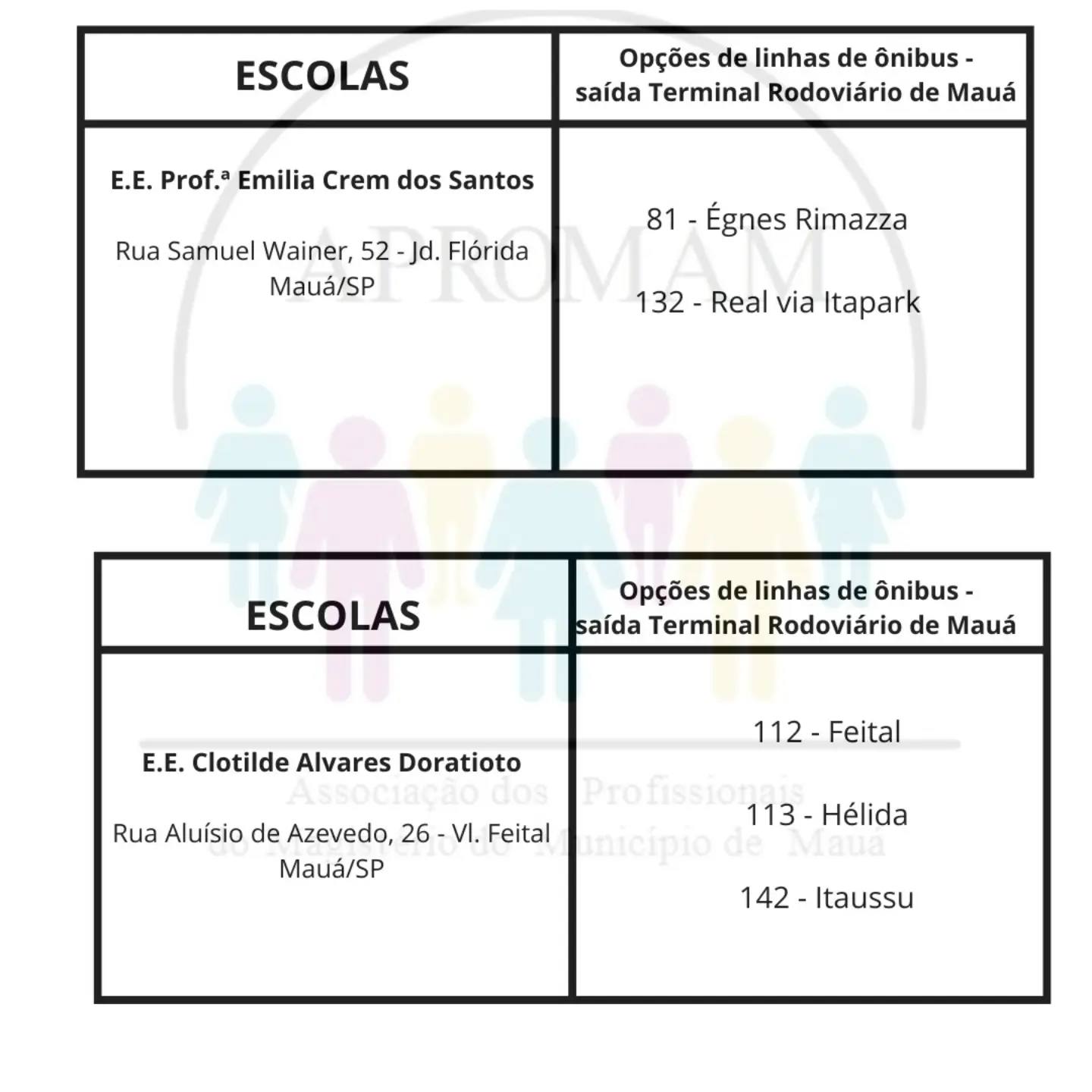 Concurso Público n°01/2024, para as vagas de ADI e PEB II, será realizado no dia 01 de setembro nas escolas citadas abaixo, na tabela você terá a indicação da linha de ônibus que dará acesso a cada escola.