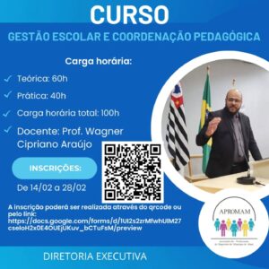 *Inscrições*: 14/02/2025 a 28/02/2025, através do qrcode ou pelo link https://docs.google.com/…/1UI2s2zrMfwhUlM27cseI…/preview Para não associados o valor do curso será de